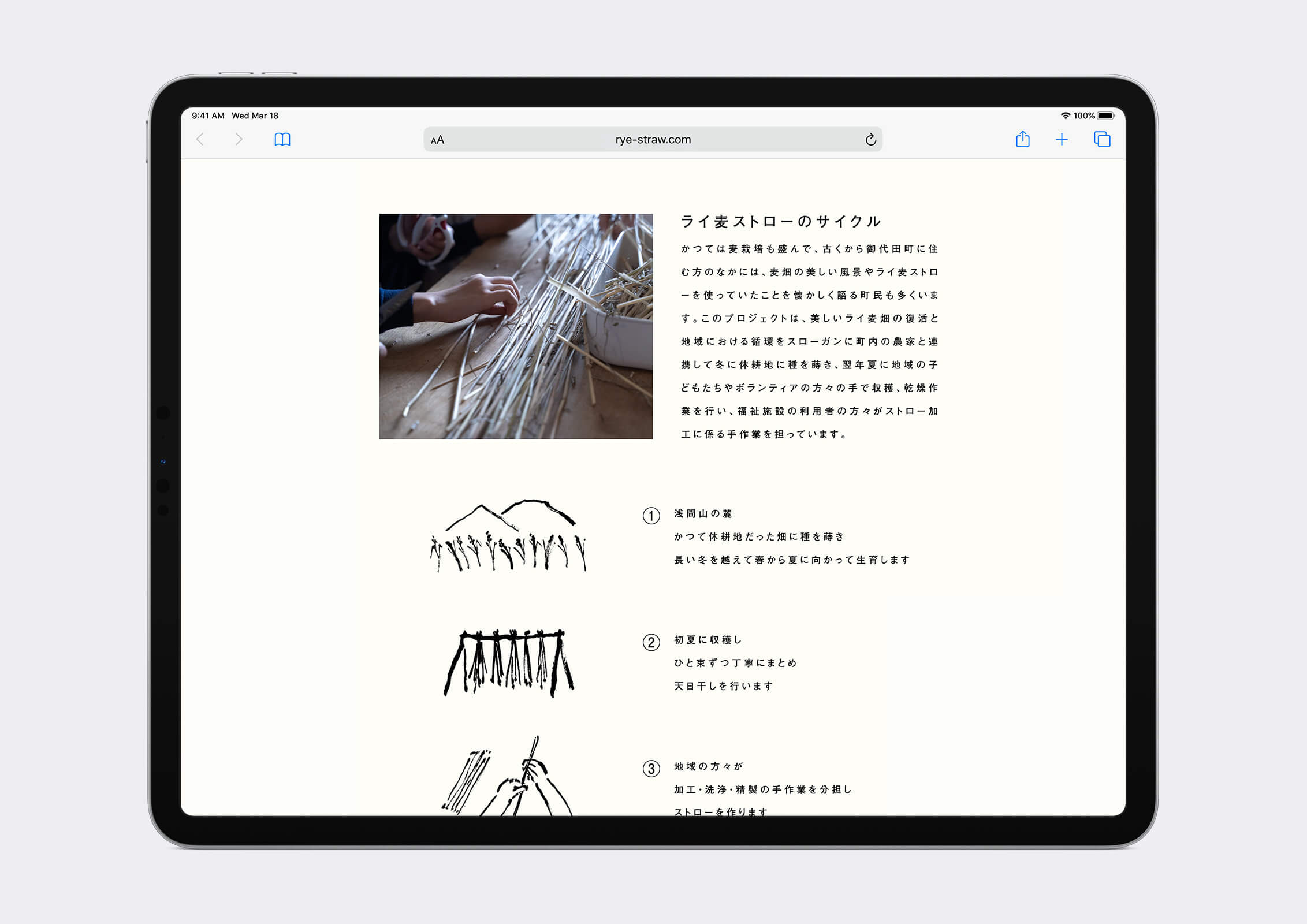 ライ麦を絵筆にして描かれたイラストを用いながら、