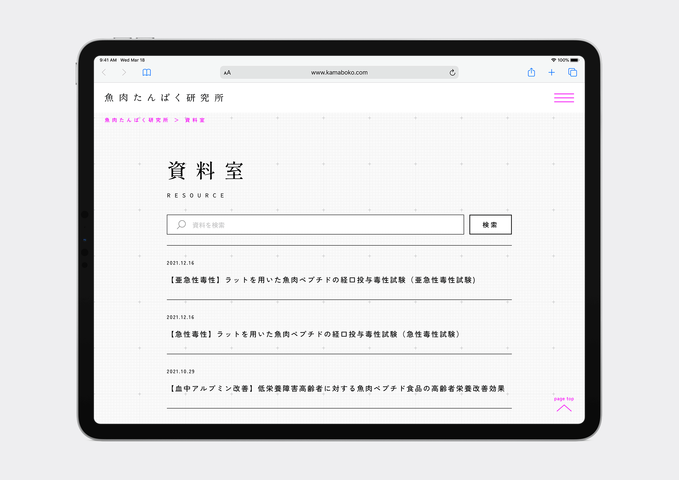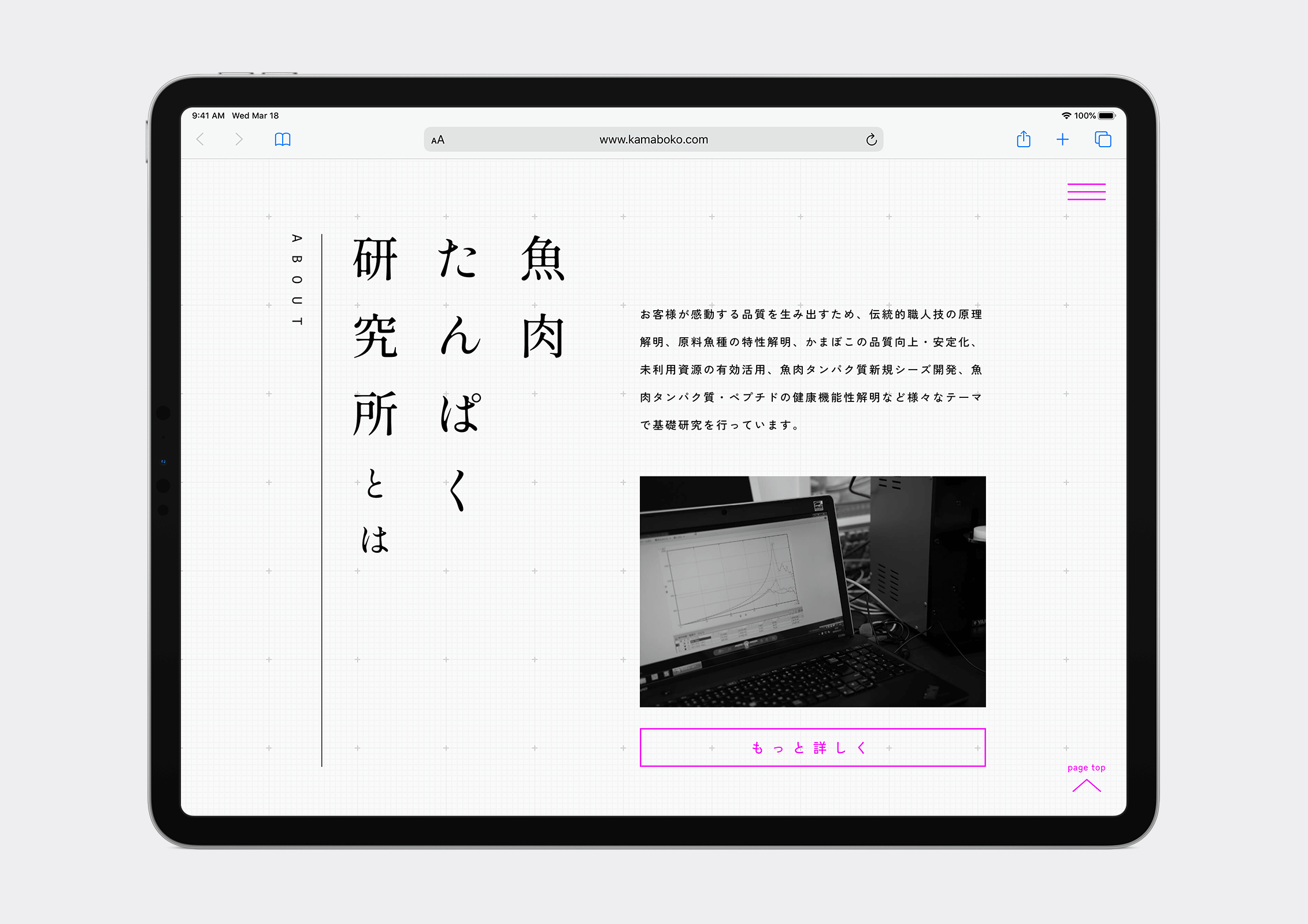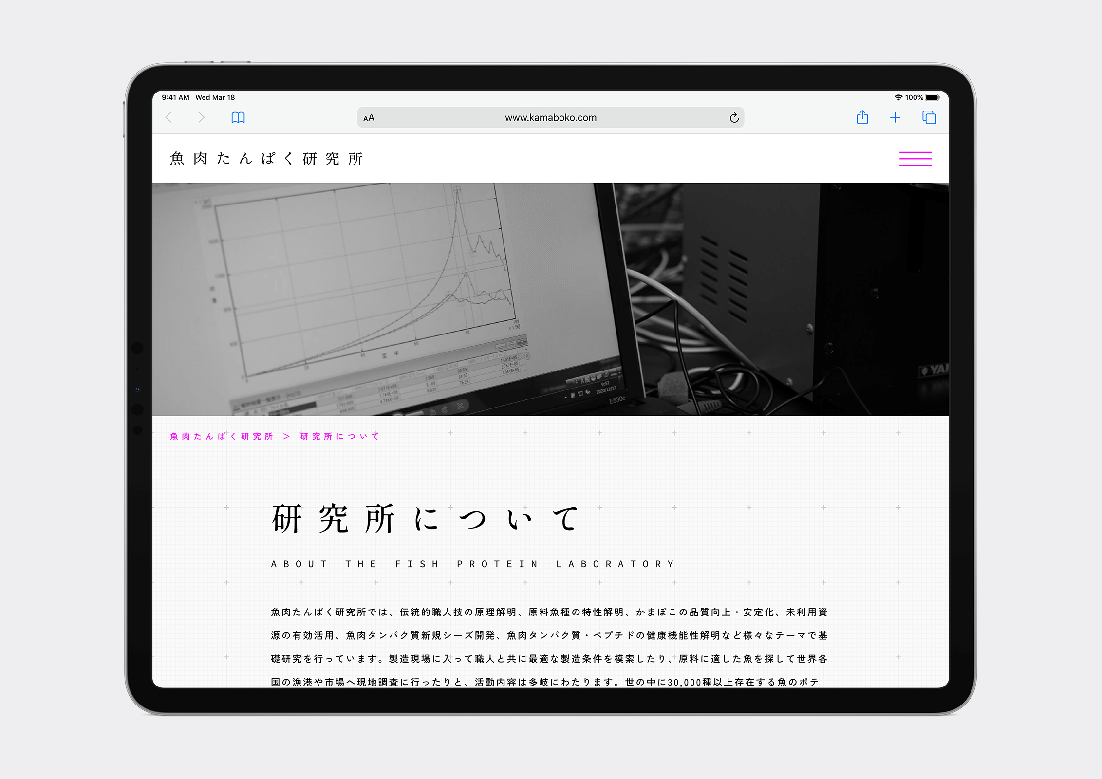 かまぼこの老舗・鈴廣の研究部門「魚肉たんぱく研究所」のWebサイトのデザインを担当しました。